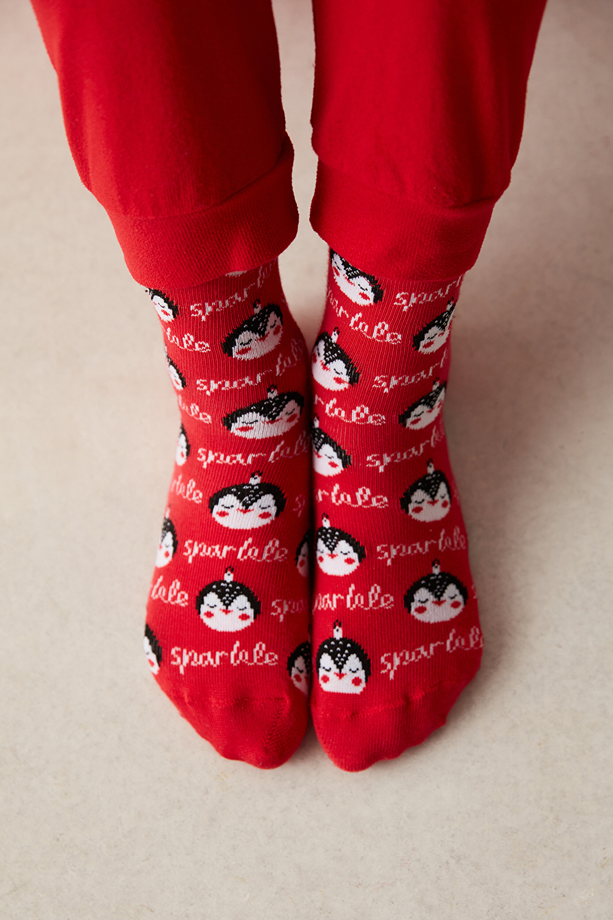 Girls Sparkle 2in1 Red Socket Socks