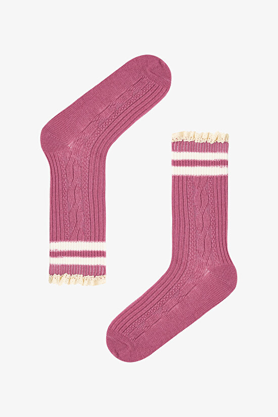 2 Pairs of Cotton Socket Striped Lace Ruffle Socket Socks
