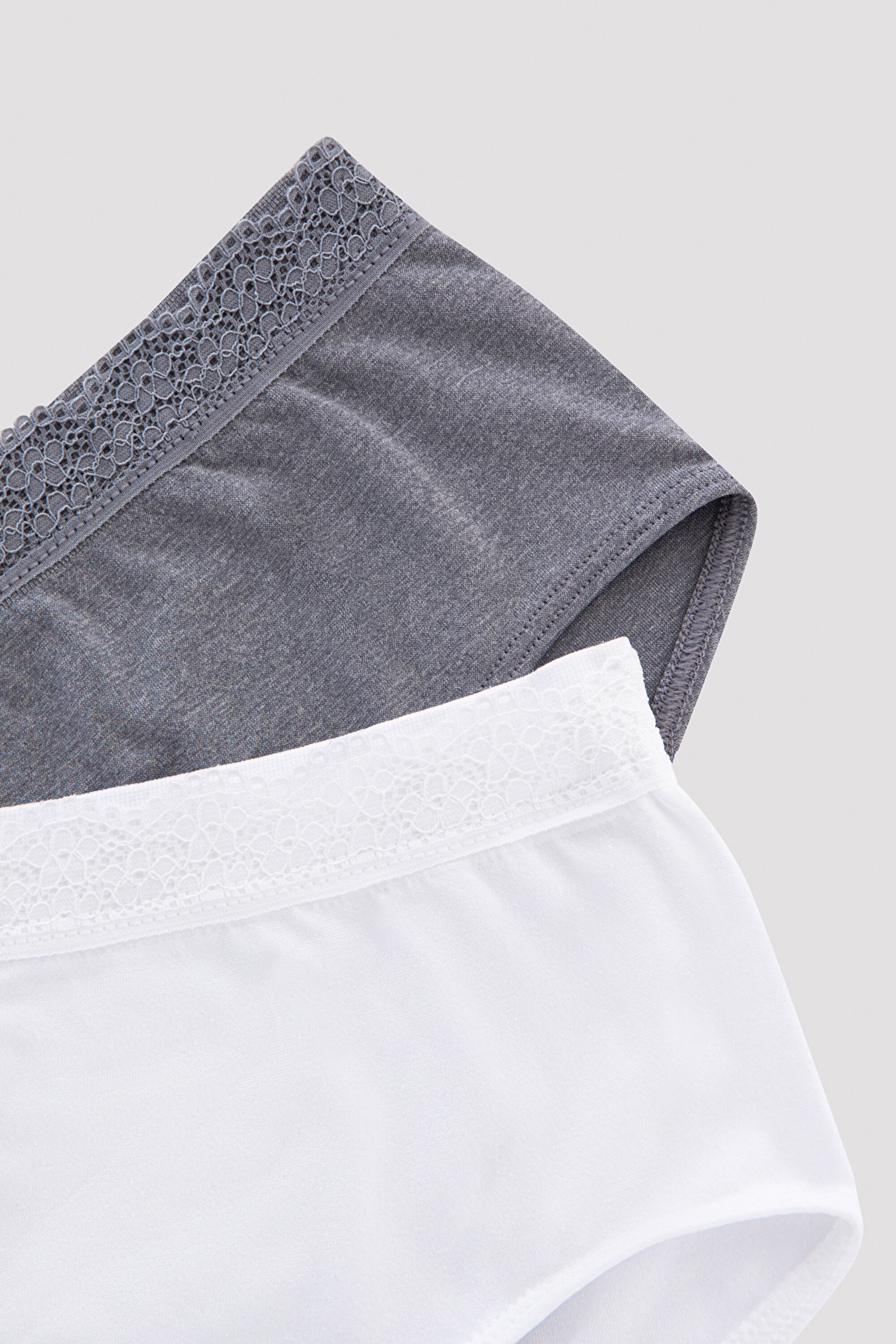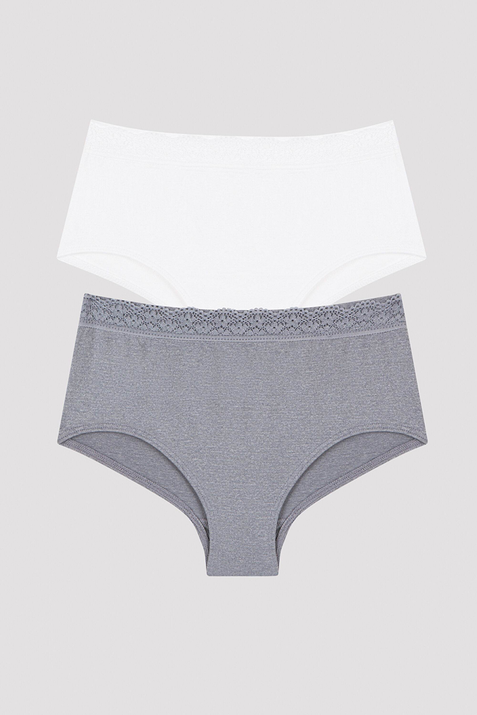 Teen Comfort Lace 2-Piece Hipster Panties brings together comfort and elegance in underwear! Teen Comfort Lace 2-pack Hipster Panties; It consists of two hipster panties, one gray and the other white. Drawing attention with their simple designs, hipster panties are complemented in an eye-catching manner with delicate lace embroidery adorning the waistbands. Teen Comfort Lace 2-Piece Hipster Panties, which hug the hips comfortably thanks to their hipster cut, give warm touches to the skin with their soft texture. Offering freedom of movement with its flexible structure, it accompanies fidgety girls with pleasure all day long. Stylish girls can create great sets by combining the Teen Comfort Lace 2-Piece Hipster Panties with the Teen Comfort Pad Seamless 2-Piece Half Tank Top!