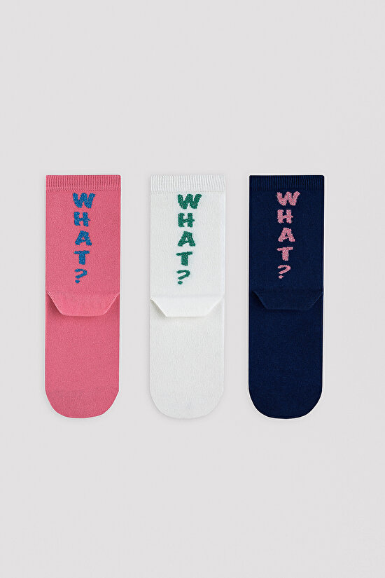 The 3 piece socket sock set consists of Skt, pink, blue, and white colored socks. These socks, with the slogan "What" on them, are both stylish and comfortable. This product, which will complete your combinations with different color options, is an ideal choice for socket sock lovers.