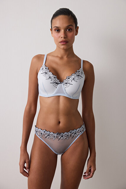 Çizgili Marvel Brode Detaylı Balenli Dolgusuz Toparlayıcı Sütyen