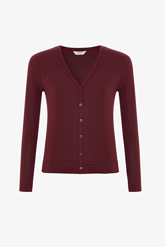 Bordo V Yaka Uzun Kollu Hırka