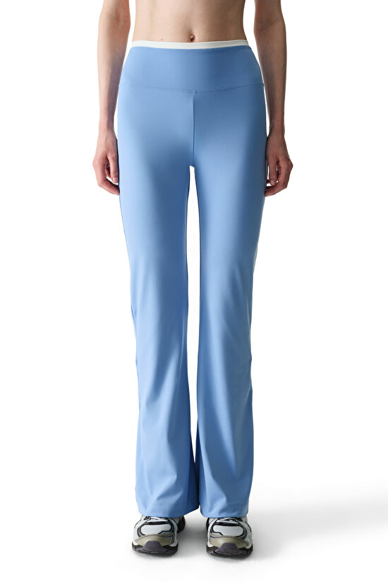 Mavi Kontrast Biyeli Yüksek Bel İspanyol Paça (Flare) Pantolon