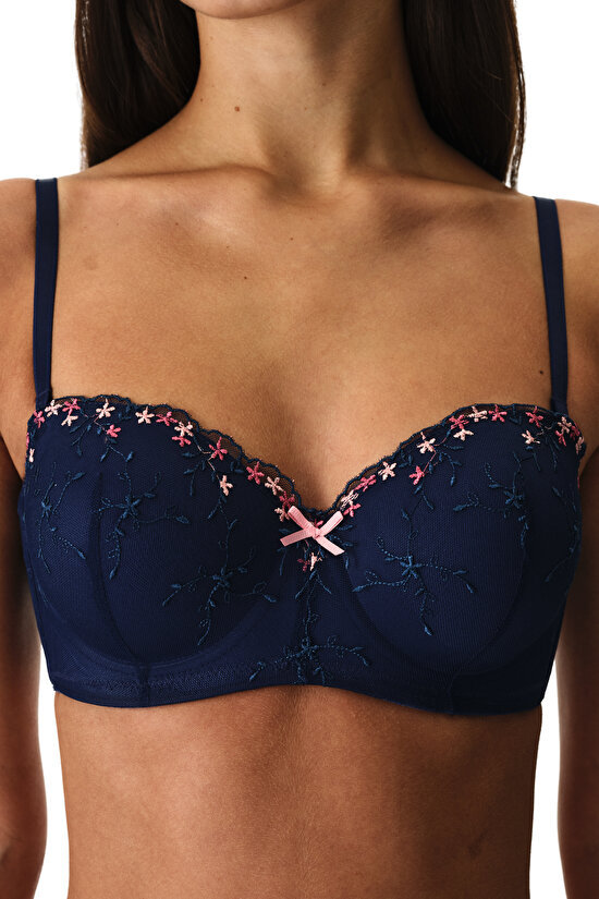 Lacivert Lotus Straplez Broidery Sütyen