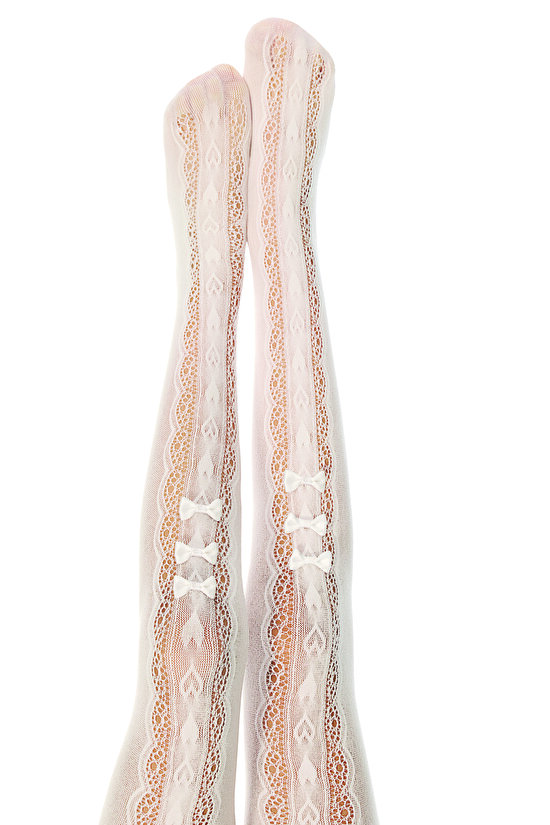 Beyaz Kız Çocuk Fiyonk Detaylı File Külotlu Çorap