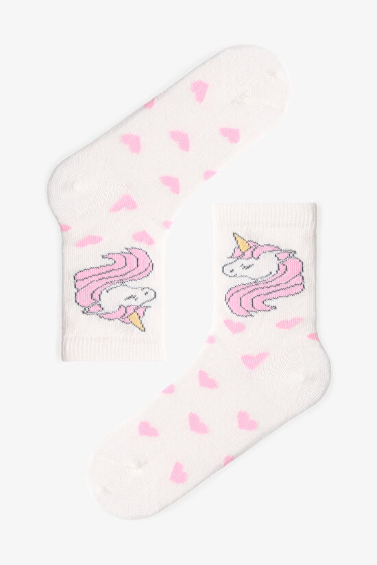 Çok Renkli Kız Çocuk Heart Stripe Unicorn 4lü Soket Çorap